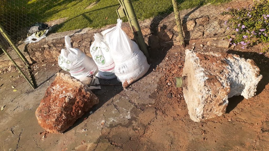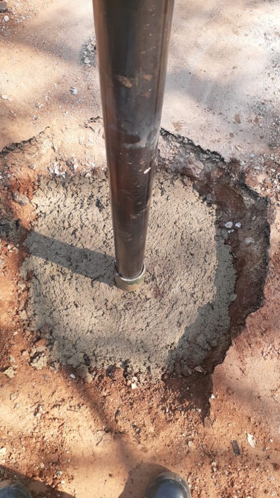 The old flood light housings which had rusted and perished. Notice how very deep we dig up in order to ensure a stable and solid base for the new flood light.